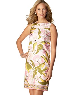 The power of pales. A very feminine dress with a softly colored, tropical print .