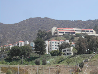 From Pacific Coast Hwy, looking up toward campus...
