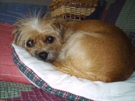 This is my mom's carin terrier, Jolie, right after she got her about a year ago. She's grown a bit since then though, and gotten a little redder... I adore her, though she isn't much of a lap dog