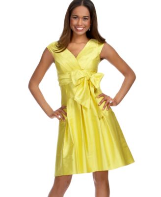 Tahari by ASL Silk V-Neck Dress with Large Bow