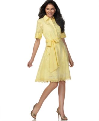 T Tahari Short-Sleeve Belted Floral-Eyelet Shirtdress