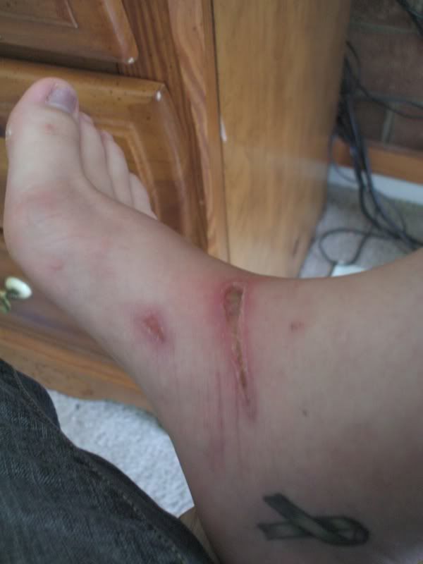 My mom made me go to the doctor today. She said it looks like it's healing well. but, it still hurts like hell and is all red. She gave me some antibiotic ointment to put on it, so I'll be starting that tomorrow. I think, right now, I'm going to douse in peroxide. I really do have a really high pain tolerance. Seriously, I had the first surgery I can remember when I was 4. Had a round of injections and was casted when I was 15....this little burn is making me feel like a pussy.